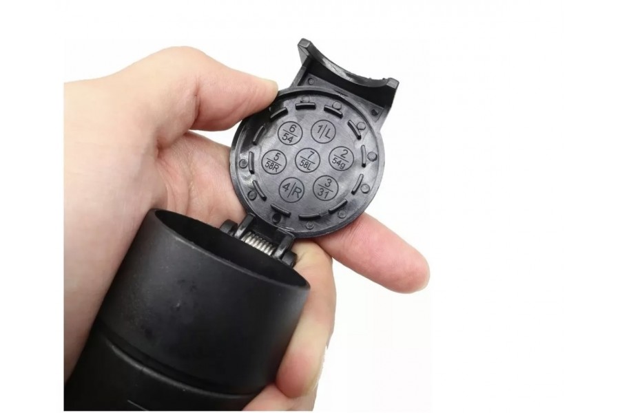 Adaptador eléctrico para remolques de 7 pines, es un adaptador que proporciona alimentación eléctrica a las luces traseras, las intermitentes, los frenos y otros sistemas del remolque.