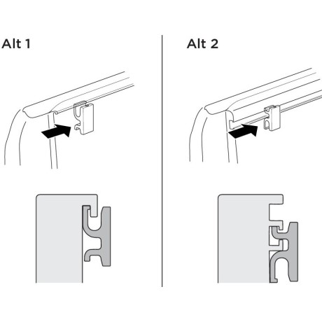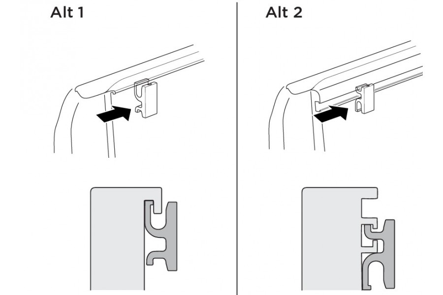 Las abrazaderas de montaje universales no requieren cortes ni perforaciones y funcionan con una vía de la plataforma tradicional y camionetas equipadas con un sistema de guías montado en la caja.