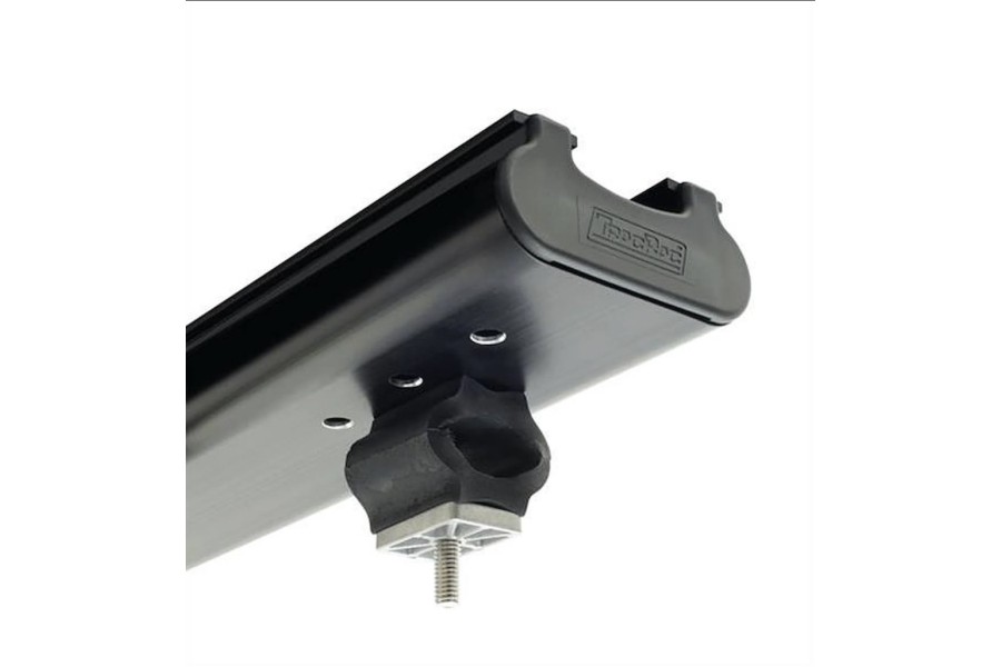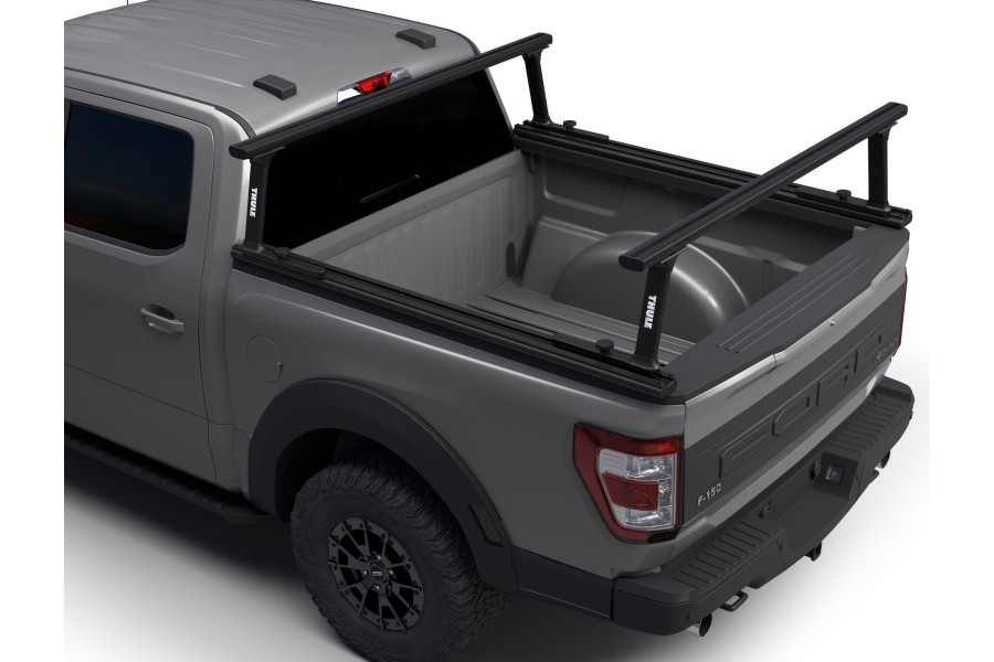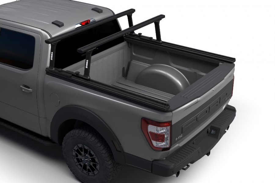 Los rieles de la base Thule TracRac proporcionan una instalación sin perforaciones y se fijan en las agarraderas metálicas de la camioneta.