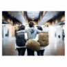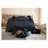 El panel atravesado asegura la bolsa de lona a la maleta con ruedas