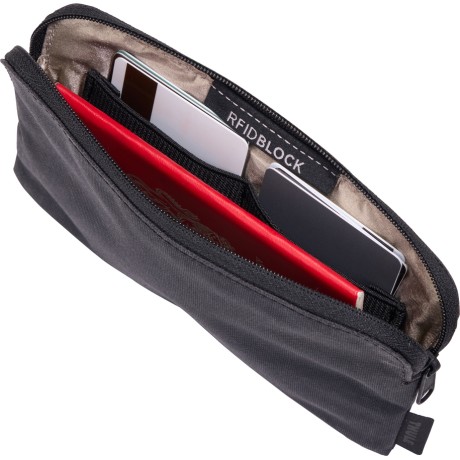 Guarde las tarjetas de crédito en las correas elásticas del estuche con protección RFID