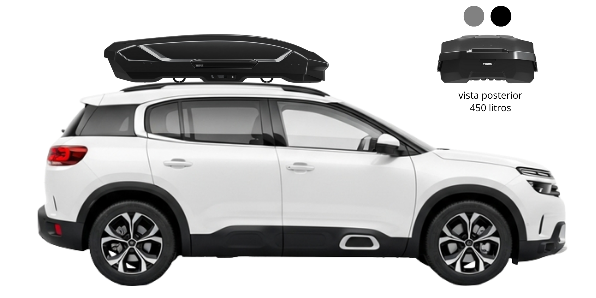 Diseño Aerodinámico, menor ruido en viajes, comodidad y fácil anclaje de accesorios. Incluye riel de carga. Disponible en color aluminio y color negro.