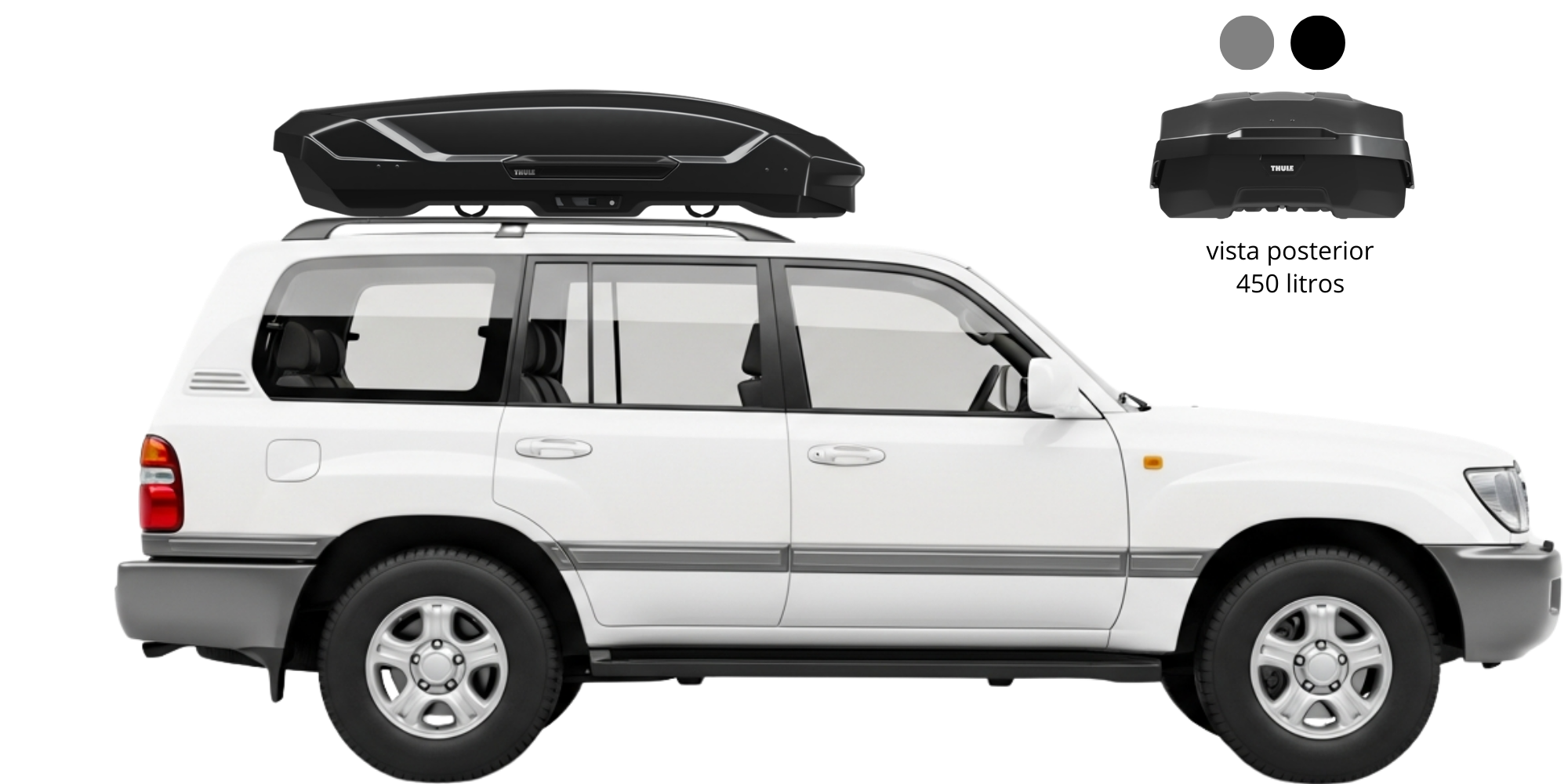 Diseño Aerodinámico, menor ruido en viajes, comodidad y fácil anclaje de accesorios. Incluye riel de carga. Disponible en color aluminio y color negro.