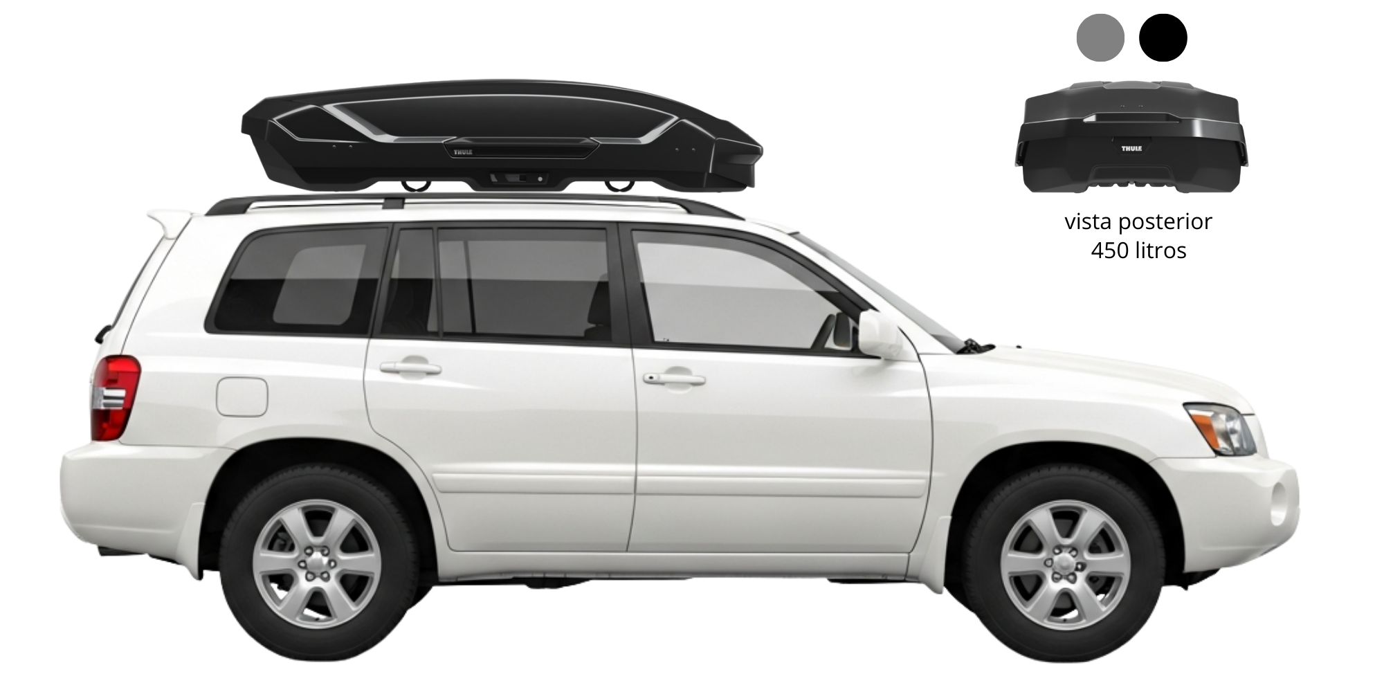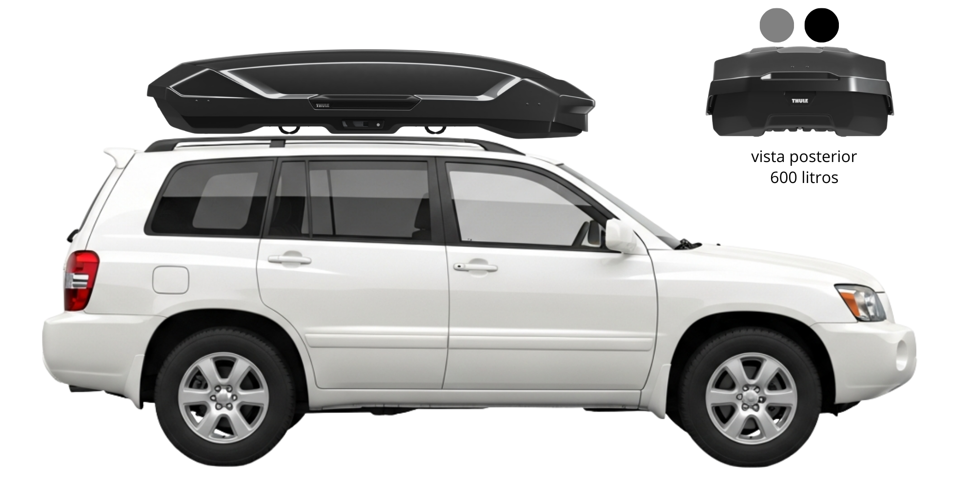 Diseño Aerodinámico, menor ruido en viajes, comodidad y fácil anclaje de accesorios. Incluye riel de carga. Disponible en color aluminio y color negro.