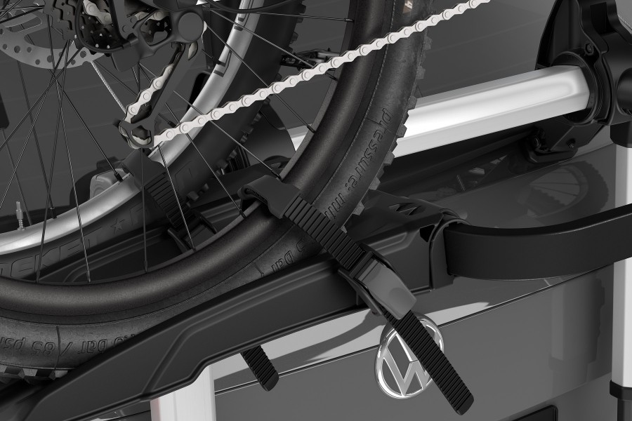 Fácil montaje de bicicletas con brazos de bicicleta ajustables/removíbles y perillas de limitación de torque Thule AcuTight que hace un clic cuando se alcanza el torque óptimo