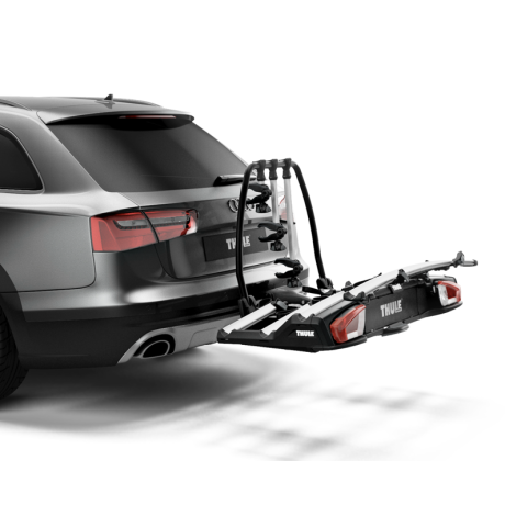 Thule Velospace XT es un portabicicletas versátil para una amplia gama de tipos de bicicletas: desde bicicletas eléctricas, bicicletas de neumáticos anchos y bicicletas pequeñas para niños hasta fibras de carbono (con un adaptador que se vende por separado). La carga de las bicicletas requiere una elevación mínima y el baúl sigue siendo accesible con las bicicletas cargadas. También tiene la opción de añadir el baúl de carga liviano Thule BackSpace, transformando su portabicicletas en un portacargas. O, con el adaptador para bicicletas Thule VeloSpace XT (se vende por separado), puede ampliar el portabicicletas para llevar 4 portabicicletas. Cuando no se utiliza, el Thule VeloSpace XT es totalmente plegable y puede guardarse en el baúl del vehículo.