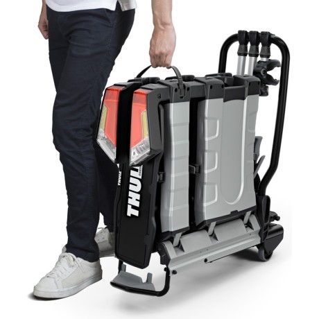 El portabicicletas con barra de remolque Thule EasyFold XT 3 es un portabicicletas montado en barras de remolque completamente plegable, compacto y fácil de usar para una amplia gama de bicicletas y bicicletas eléctricas. Cargar bicicletas pesadas no supone ningún esfuerzo y con la rampa de carga opcional es aún más fácil. Este duradero portabicicletas también permite el acceso total al baúl incluso cuando las bicicletas están cargadas. Pliega el portabicicletas hasta un tamaño compacto y guárdalo en tu baúl, perfecto para una aventura improvisada en bicicleta.