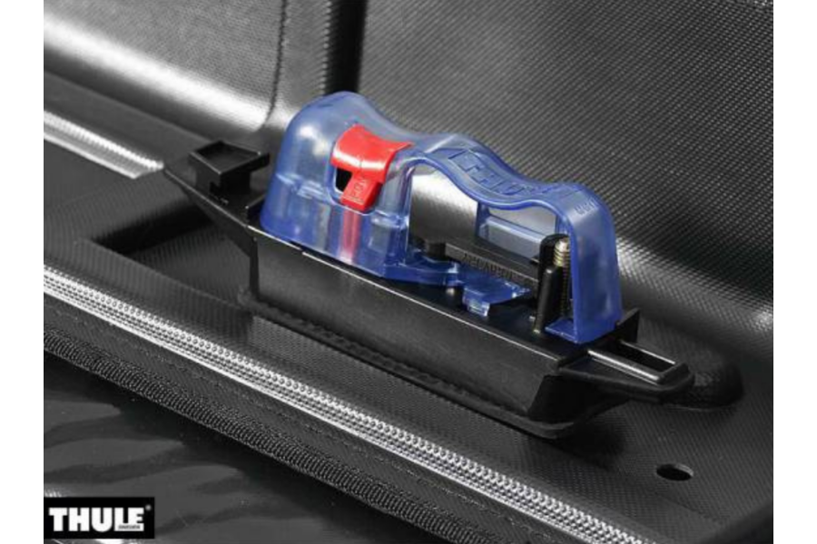 Repuesto original Thule Easysnap 80 mm (14688), diseñado para asegurar y fijar la caja de techo blanda Thule Ranger 500 a tus barras de carga de forma rápida y segura.